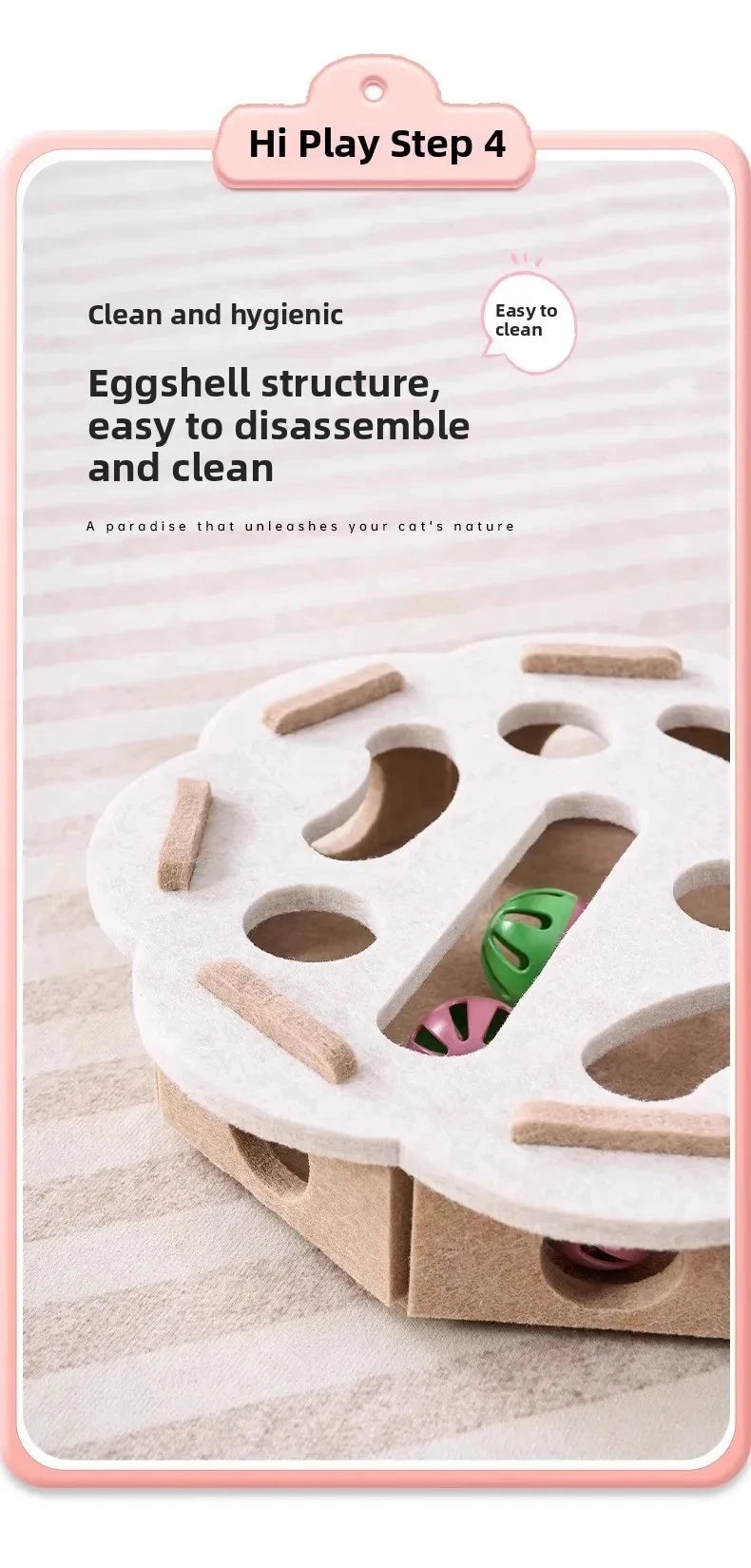 This toy serves multiple purposes - it's a scratching board, a playhouse, and a ball launcher, making it a versatile addition to your pet's playtime.