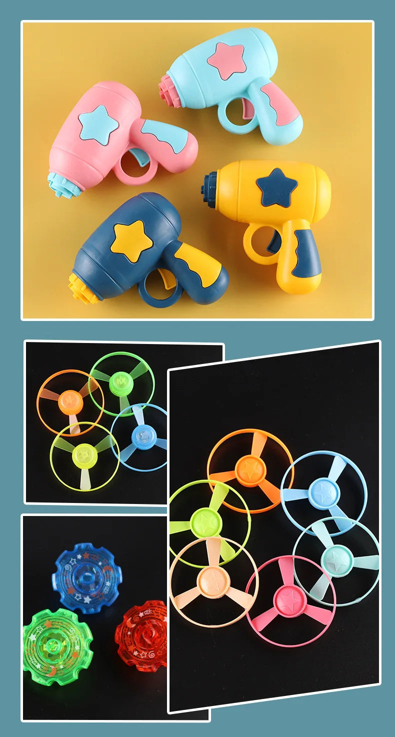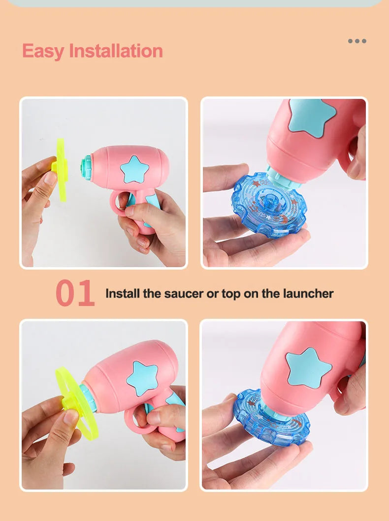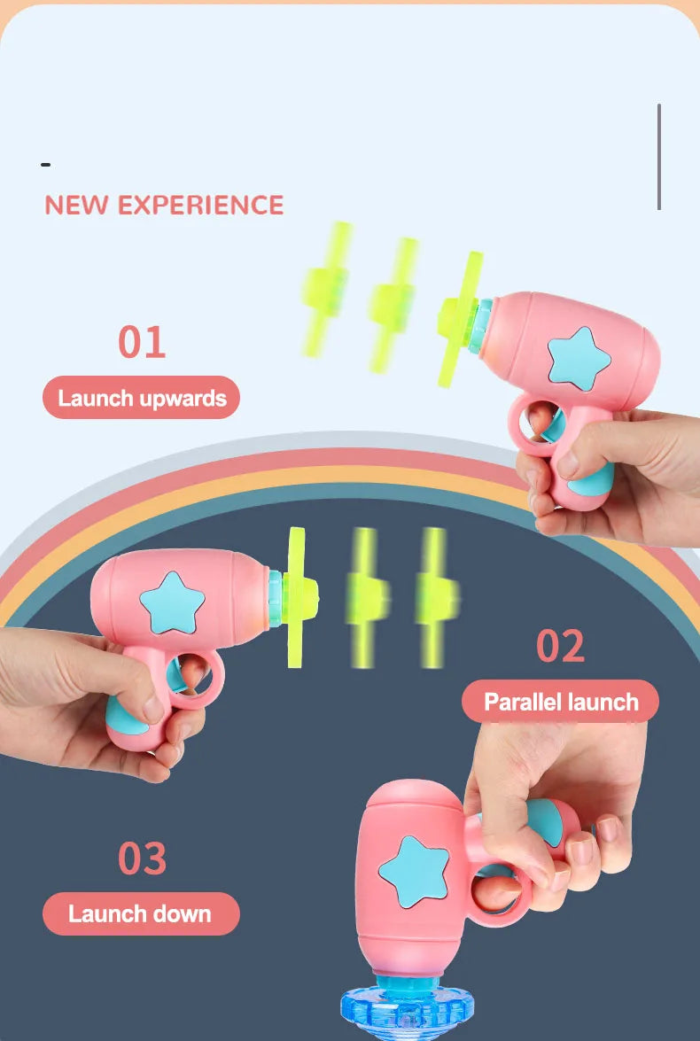 Product environmental protection, non-toxic and harmless, you can rest assured that children play. Spinning tops gun suitable for children over 2 years old.