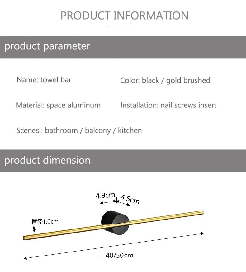 Material: space aluminum towel bar + zinc alloy round base
