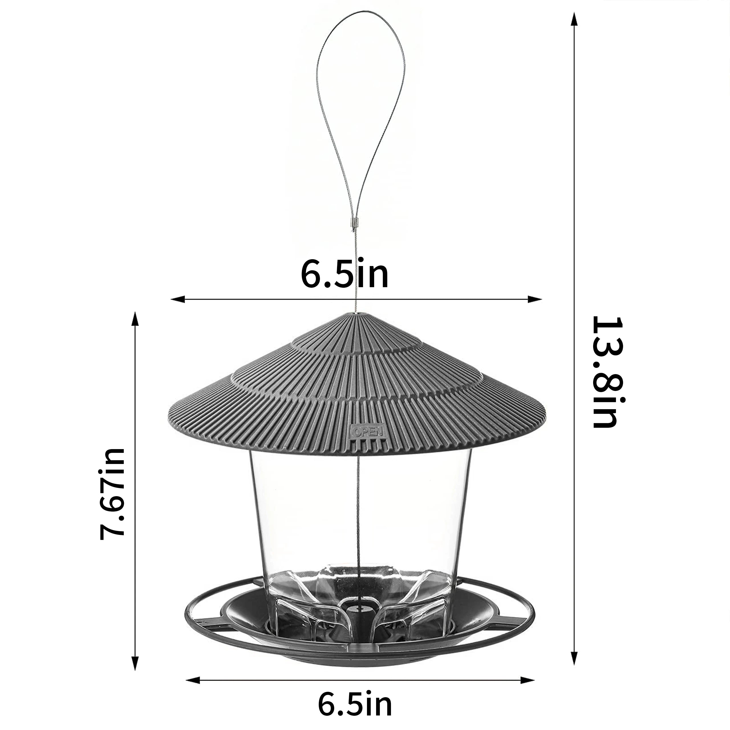 Large Capacity: Made of durable, high quality plastic. The clear plastic make it easy to inspect bird seed levels. Hold up to 820ML bird seeds. Large opening allows for easy refills and clean.